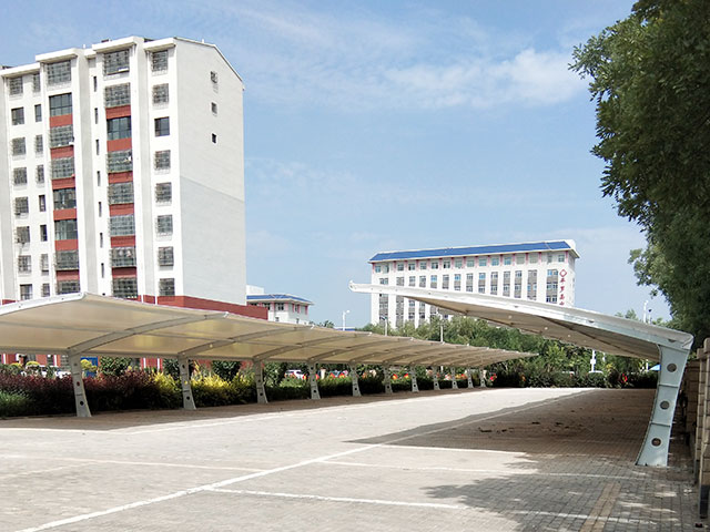 膜结构电动车棚的制造应在专业工厂进行,它应该有干净,无趣,和防止阳光直射的环境条件,膜制造应有专门的设备和车间,室内工作温度应保持在5-30℃范围内,防止热源对薄膜的热辐射影响。